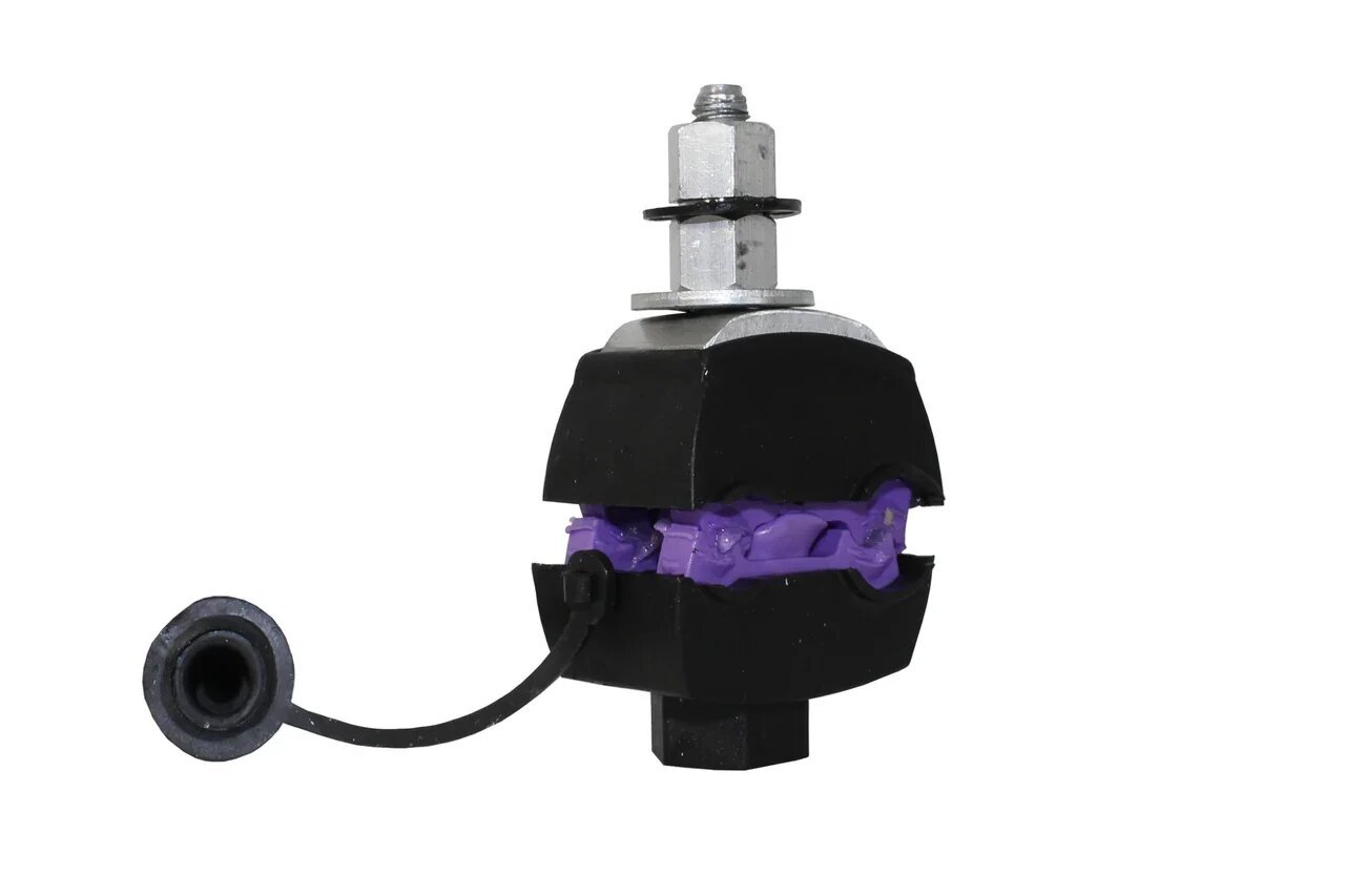 Предназначен для электрического соединения нулевой и токопроводящих жил провода типа СИП при ответвлениях от магистрали (медных или алюминиевых). Зажим создает надежный электрический контакт. Монтируется при температуре до -20 oС. Момент срыва пластиковой головки болта соответствует эквивалентному усилию, необходимому для создания электрического контакта проводов (магистрали, абонентского ответвления, освещения). На прокалывающие элементы нанесена контактная смазка. Зажим легко устанавливаются на провод, отсутствуют выпадающие компоненты. Болт изолирован от контактных деталей зажима. Возможность фиксации нижней части зажима ключом S 19 облегчает затяжку болтов. Испытания зажима на электрическую прочность и герметичность проводятся с погружением в воду при подаче напряжением 6 кВ в течение 1 минуты.